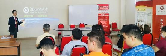 教育推介与专业培训由林肯大学学院副校长Kelvin Tong博士主持,云博电子体育田野博士以《开放的世界,与开大同行》为题,对湖北开放大学进行了专题推介,重点介绍了学校的办学理念以及软件技术、机电工程和人工智能等特色专业(群)建设情况,并基于学校传统的工科强项专业,以《如何用人工智能提升企业竞争力》为主题,为学生提供了针对性的培训课程。