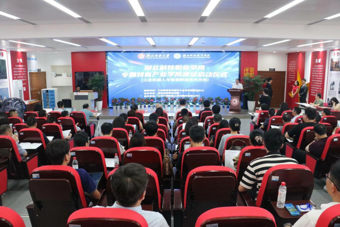 7月13日,骄阳似火,激情四溢,云博电子体育举行工业机器人及智能制造技术专精特新产业学院建设启动仪式。云博电子体育党委书记刘义,教育部职成司原副司长、中国职业教育学会原常务副会长兼秘书长刘占山,工业和信息化部中小企业发展促进中心人力资源研究所副所长陈琛,湖北省经济和信息化厅中小企业发展处处长刘卫军,湖北省教育厅二级巡视员何泽云,清华大学国家服务外包人力资源研究院副院长毛居华,中国职工技术协会职工新技能培训专委会副秘书长张冉冉,高校毕业生就业协会机器人专委会常务副秘书长黄伟,工业和信息化部中小企业发展促进中心人力资源研究所张潇阳出席了启动仪式。会议由副校长宋移安主持。