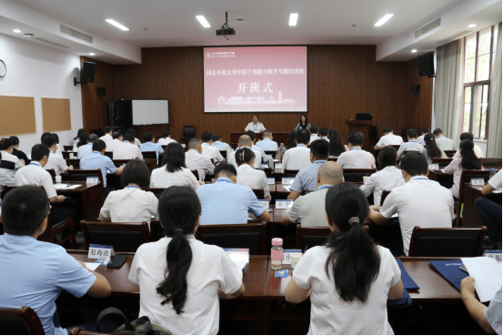 7月15日,中层干部能力提升专题培训班正式开班,湖北开放大学党委书记钟毓宁出席开班式并作动员讲话。他指出:一要明确培训目标,找准前进方向。参加本次培训班的同志,都是学校事业发展的关键力量,要明确培训目标,增强培训的责任感和使命感。本次培训既有党性教育,又有业务培训,目的就是要全面提升干部素质和能力,打造一支政治过硬、能力过硬、作风过硬的忠诚干净担当的高素质干部队伍,为学校办好一流开放教育、创建职业教育国家级高水平专业群,开创学校高质量发展新局面提供强大人才支撑。二要弘扬红船精神,汲取奋进力量。习近平总书记将“红船精神”概括为“开天辟地、敢为人先的首创精神,坚定理想、百折不挠的奋斗精神,立党为公、忠诚为民的奉献精神”。我们要大力弘扬“红船精神”,不断从中汲取前进的动力,以“犯其至难,图其至远”的勇气,以开放的理念、创新的思维和实干的作风,敢于改革创新,把“红船精神”体现到永不懈怠的精神状态和一往无前的奋斗姿态上,转化为奋力实现学校“十四五”规划目标任务、推动学校事业高质量发展的强大力量。三要严守培训纪律,确保学有所获。全体学员要以问题为导向,带着问题来,学到办法回,确保学习达到内化、转化、提高的效果。要严格遵守纪律要求,端正学习态度,服从教学管理,充分展现湖北开放大学领导干部应有的精神风貌和良好形象。