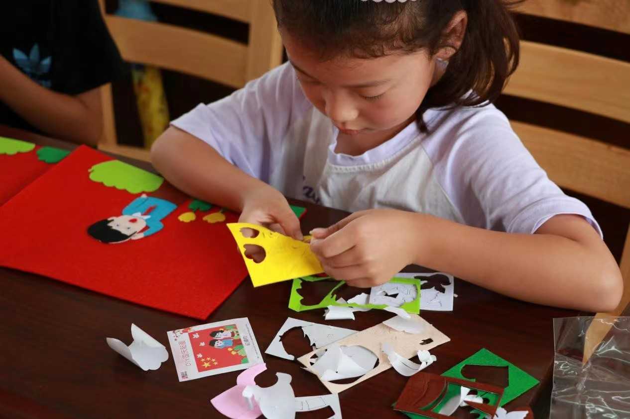 为了进一步培养小朋友们的爱国情怀,头雁实践队成员通过不织布画——“我爱祖国”手工活动,激发小朋友们无限的创造力。在头雁实践队队员的指导下,小朋友们将一片片不织布拼接成自己心中的祖国形象。在制作过程中,小朋友们不仅锻炼了手眼协调能力和耐心细致的品质,更深刻体会到了祖国的伟大和美好。