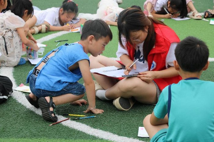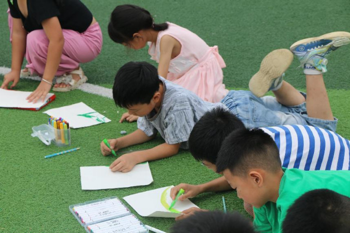田野绘趣,童绘家乡。在观察中认识家乡,在绘画中赞美家乡,此次田野课堂是美育教育的重要一课。头雁实践队成员带领孩子们来到操场观察家乡风采,引导大家用画笔和色彩来赞美家乡。在小老师们的教导下,大家跃跃欲试,纷纷拿起画笔,画出自己心中家乡最美的模样。