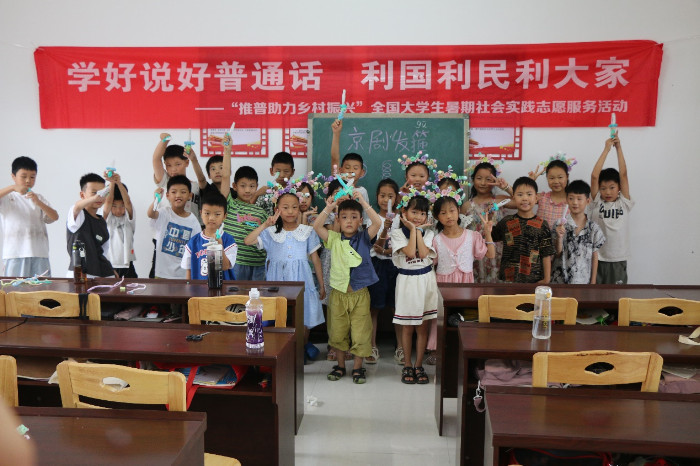 (图为头雁实践队成员帮助小朋友绘画脸谱)