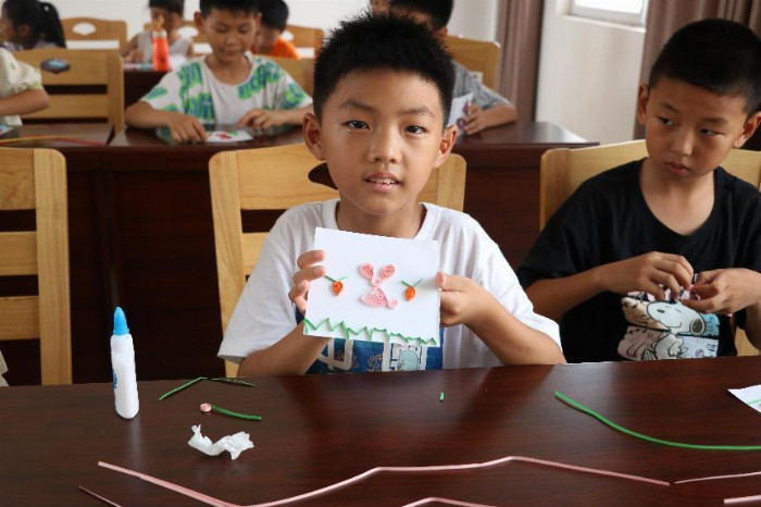 衍纸艺术,妙趣横生。7月6日,头雁实践队开展衍纸课堂,团队成员从衍纸文化、衍纸布局、操作步骤等方面进行教学,鼓励小朋友们发挥想象力,尝试不同的颜色和形状,制作出不同动植物,让每一个作品都充满个性和创意。整个教学过程充满了温馨与互动,让小朋友们感受到了学习的乐趣与成就感。