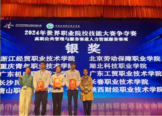 10月25日至27日,2024年世界职业院校技能大赛争夺赛公共管理与服务赛道“人力资源服务”赛项在云南交通职业技术学院举办。来自全国30个省、自治区、直辖市的58支队伍219名选手参加比赛,经过两天的激烈角逐,云博电子体育工商管理学院教师杨晶、张姝指导的人力资源管理专业的学生团队孙彬彬、黄海源、李靖凭借出色的表现荣获银奖。