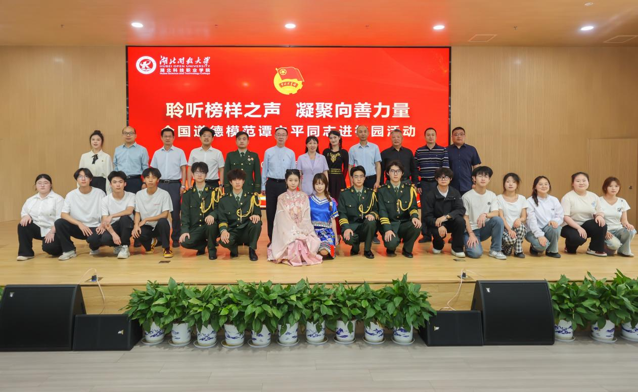全国道德模范谭之平曾因孝老爱亲、自强不息的感人事迹广受社会赞誉。“16岁那年,母亲离世,父亲患上了严重的风湿病。为了筹集医药费,我拿着在百货店打工攒下的积蓄和四处借来的钱,带着父亲来到汉口,在火车站旁租下一间小店经营小超市。”谭之平望向台下师生,声音微微发颤,“这六年中,我在守着小超市的日子里看书自学,每当看到生病的父亲,我就更加坚定信念:一定要考上医学院,帮助更多像我父亲一样的患者!”2005年,她如愿考入湖北职业技术学院临床医学专业学习,用沾满油渍的账本换来了录取通知书。从辍学务农、家遭巨变到辗转打工、创业救父,再到重返校园圆梦大学,八年光阴里,她以非凡毅力谱写出逆风翻盘的人生新篇。“有人说孝心是负重前行的包袱,但于我而言,它永远是照亮黑暗的灯火。”她的话语引发全场共鸣,孝道文化的感人力量更是让不少师生为之动容。