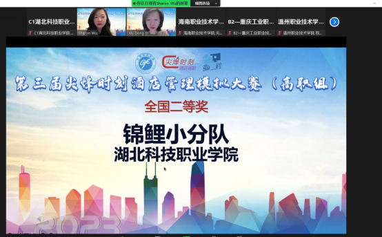 本网讯(通讯员 杨国丽 文/图)4月29日,由中国旅游协会旅游教育分会、灏悦程信息科技南京有限公司、尖烽时刻组委会联合主办的第三届“尖烽时刻”酒店管理模拟大赛(高职组)落下帷幕。工商管理学院选派2021级酒店管理与数字化运营专业唐依婷、陈曼姿、李红玲、江宾伶组成的锦鲤小分队团队挺进决赛荣获全国二等奖。