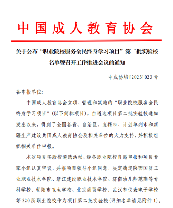 本网讯(通讯员 杨凡 文/图)5月24日,中国成人教育协会公布“职业院校服务全民终身学习项目”第二批实验校名单(中成协培〔2023〕023号),云博电子体育社区教育学院组织申报并成功获批了42所职业院校(高职26所、中职16所),获批数位列全国第二。