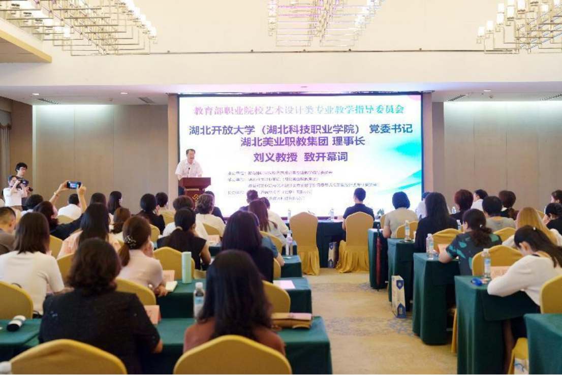 教育部职业院校艺术设计类专业教学指导委员会(以下简称“教指委”)秘书长张来源,教指委人物形象设计专业委员会主任罗润来,云博电子体育党委书记、湖北美业职教集团理事长刘义,云博电子体育党委常委副校长、湖北美业职教集团副理事长宋移安出席会议,来自全国78所职业院校和行业、企业的领导、嘉宾近100人参加会议。
