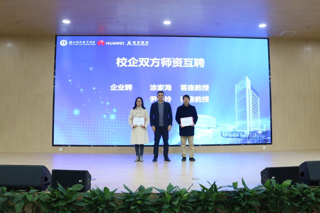 授牌仪式上,依次进行了“领先级华为ICT学院”授牌、ICT学院优秀教师、优秀学生颁奖、ICT大赛优秀学生和优秀指导教师颁奖、校企双方师资互聘并颁发聘书。教师代表李莎莎、学生代表郑妍分别上台发言,分享了自己身为教师、学生在学校华为ICT学院的人才培养体会与经验。