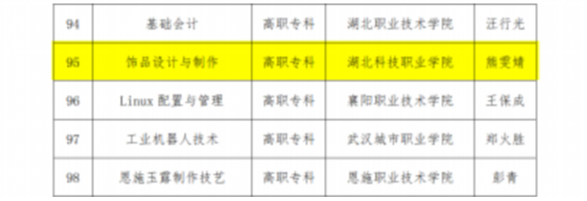 本网讯(通讯员 卢义平/文 詹乐/图)近日,湖北省教育厅公示了2023年职业教育省级在线精品课程拟认定名单和国家在线精品课程拟推荐名单,云博电子体育申报的《传感器应用技术》《中国传统文化》《商务数据分析与应用》《饰品设计与制作》4门课程获评2023年湖北省职业教育在线精品课程。至此,云博电子体育已建有7门省级在线精品课程,课程建设数量与质量位居全省高职院校前列。《邮轮客舱服务与管理》《传感器应用技术》2门课程获推参评国家级在线精品课程,有望在国精课的申建中取得新的突破。