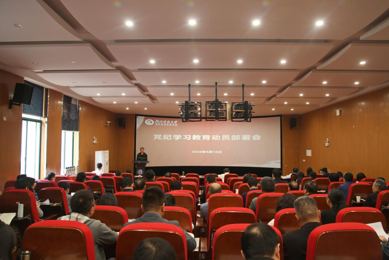 本网讯(通讯员 肖凌瑶/文 刘捷/图)4月18日上午,学校召开党纪学习教育动员部署会。党委书记刘义主持会议并作动员讲话,党委领导班子成员、全体中层领导干部参加会议。
