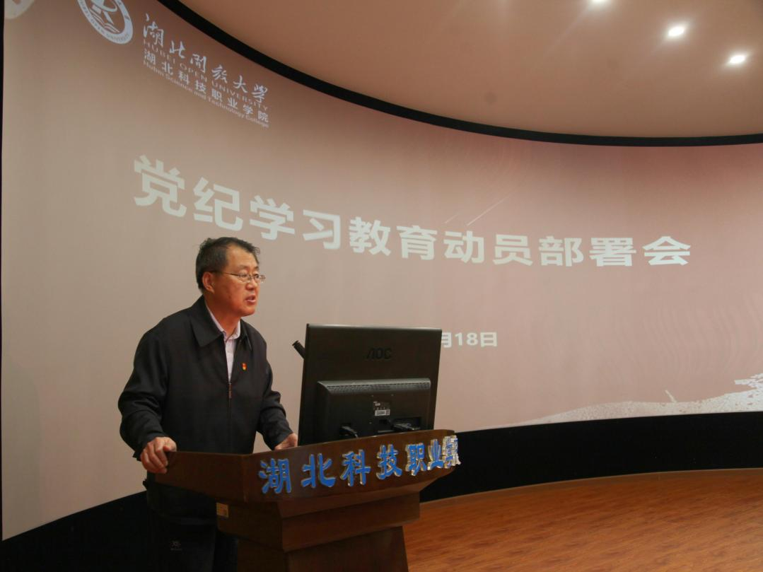 会上,刘义结合学校实际,对云博电子体育党纪学习教育工作进行了动员部署。他指出,党中央决定自2024年4月至7月在全党开展党纪学习教育,这是加强党的纪律建设、推动全面从严治党向纵深发展的重要举措。一是提高政治站位,深刻领会党纪学习教育的重大意义,切实增强政治自觉、思想自觉和行动自觉。切实把思想和行动统一到党中央决策部署上来,严格落实省委要求,把党纪学习教育作为一项重要政治任务抓紧抓实。二是准确把握目标要求,不折不扣落实各项工作安排,高质量开展好党纪学习教育。抓好学习这个重中之重,原原本本学《中国共产党纪律处分条例》,逐章逐条学、联系实际学;要充分发挥警示教育镜鉴作用,运用典型案例和身边人身边事开展警示教育,让党员干部受警醒、明底线、知敬畏;要做好解读和培训工作,帮助党员、干部深刻理解、准确把握精神实质;要抓好检视整改,把学习贯彻《中国共产党纪律处分条例》情况作为对照检查的重要内容纳入民主生活会、组织生活会,切实抓好整改落实。三是加强组织领导,着力推动党纪学习教育走深走实。本次党纪学习教育时间紧、任务重、要求高,各党总支、直属党支部要高度重视、精心组织,确保圆满完成各项任务。