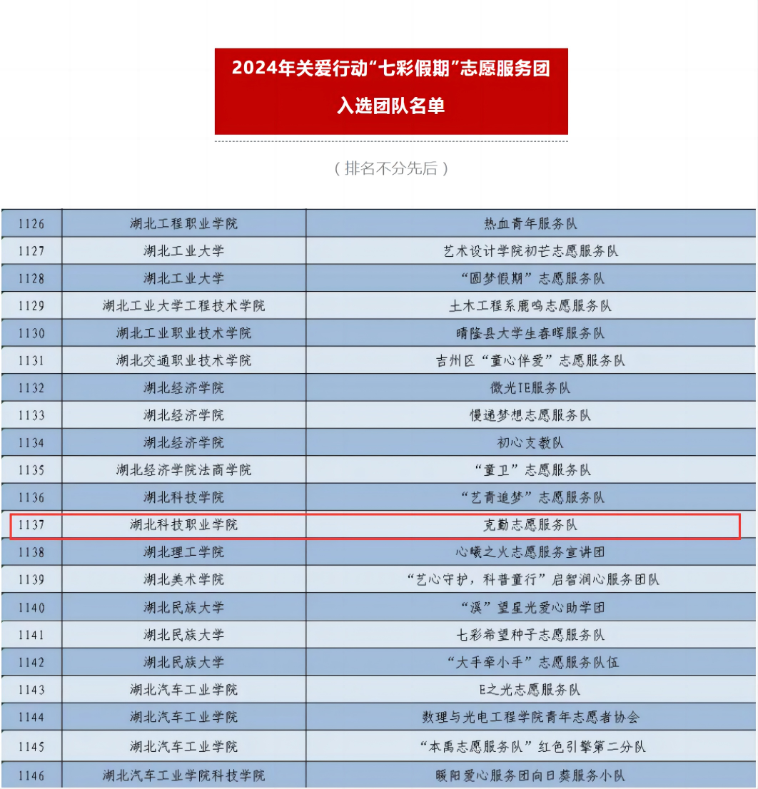 本网讯(通讯员 金垒 肖莉山 文/图)6月6日,团中央青年志愿者行动指导中心、中国志愿者协会秘书处发布2024年关爱行动“七彩假期”志愿服务团入选名单,软件工程学院克勤志愿服务队暑期社会实践团队成功入选。