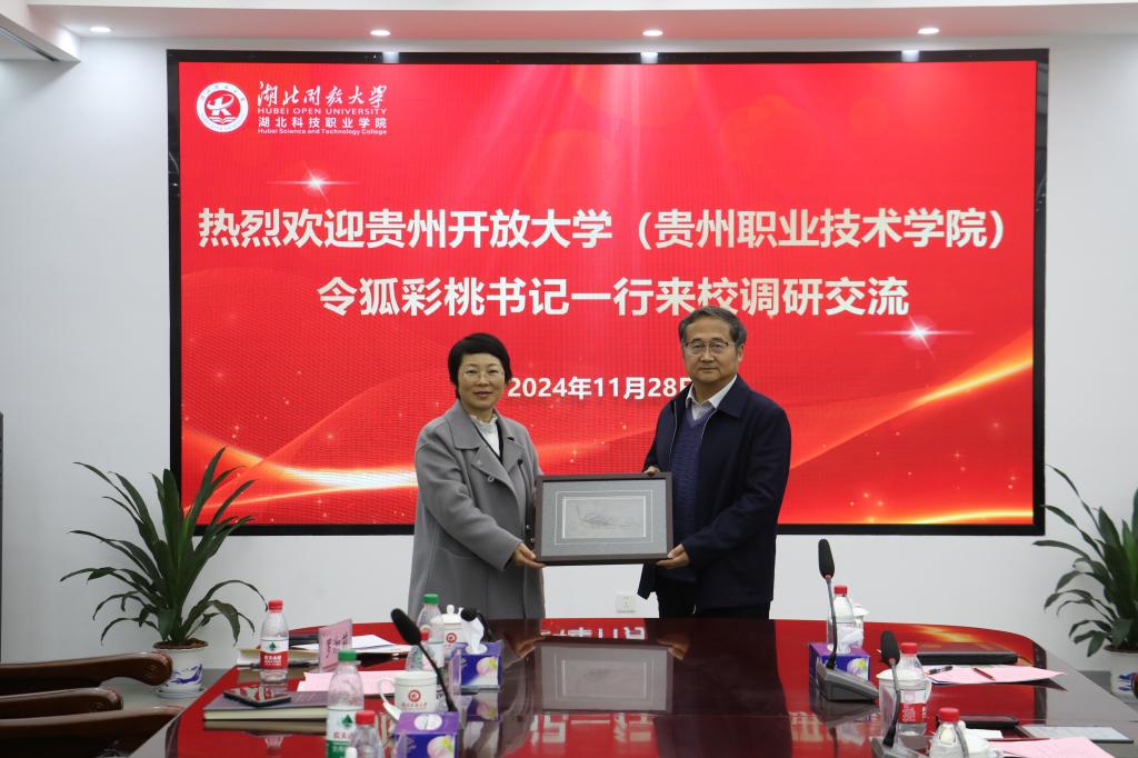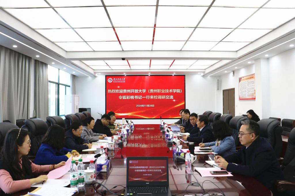 本网讯(通讯员 王欣/文 李贺刚/图)11月28日下午,贵州开放大学(贵州职业技术学院)党委书记令狐彩桃一行7人来校调研交流,校党委书记钟毓宁陪同参观交流。