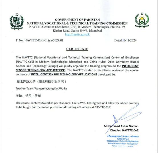 软件工程学院的国家级在线精品课程《传感器应用技术》于11月至12月踏上了“出海”征程,为巴基斯坦国家职业与技术教育委员会的学员们送去高质量教育课程。