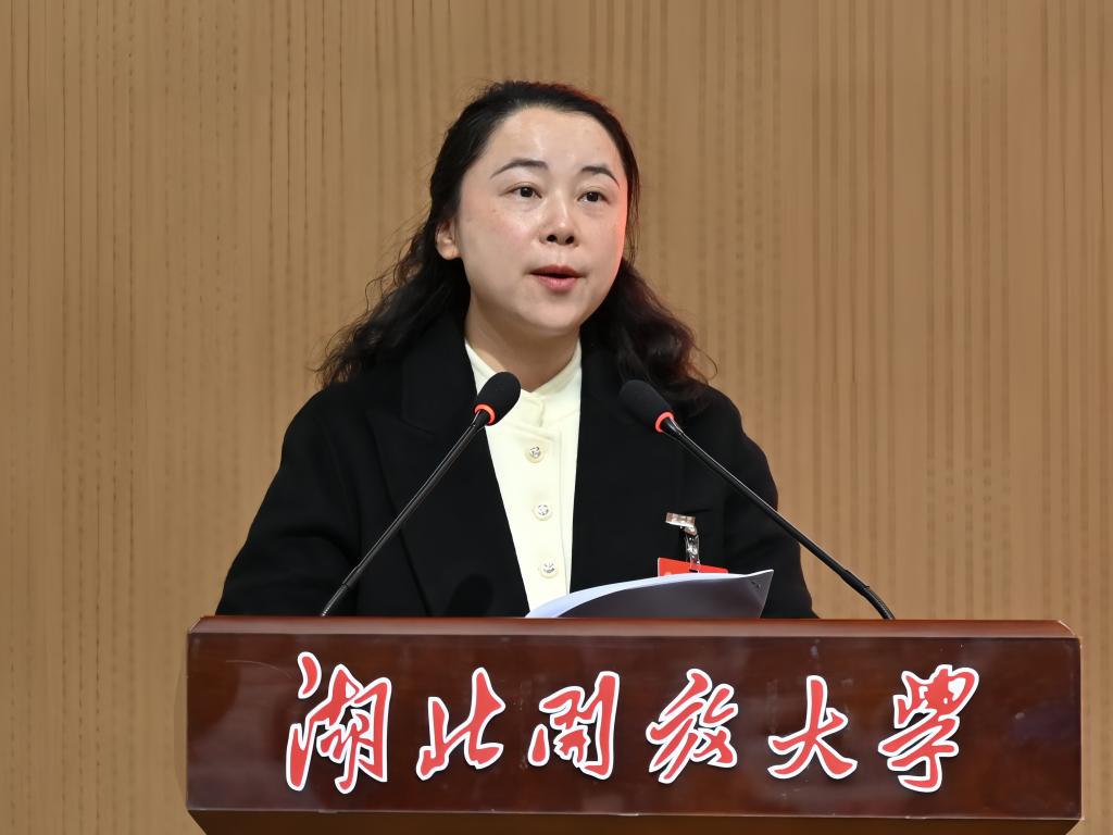 肖潇就学校专业技术岗位聘期考核办法的主要内容、制订背景、研讨过程等作了重点解读。