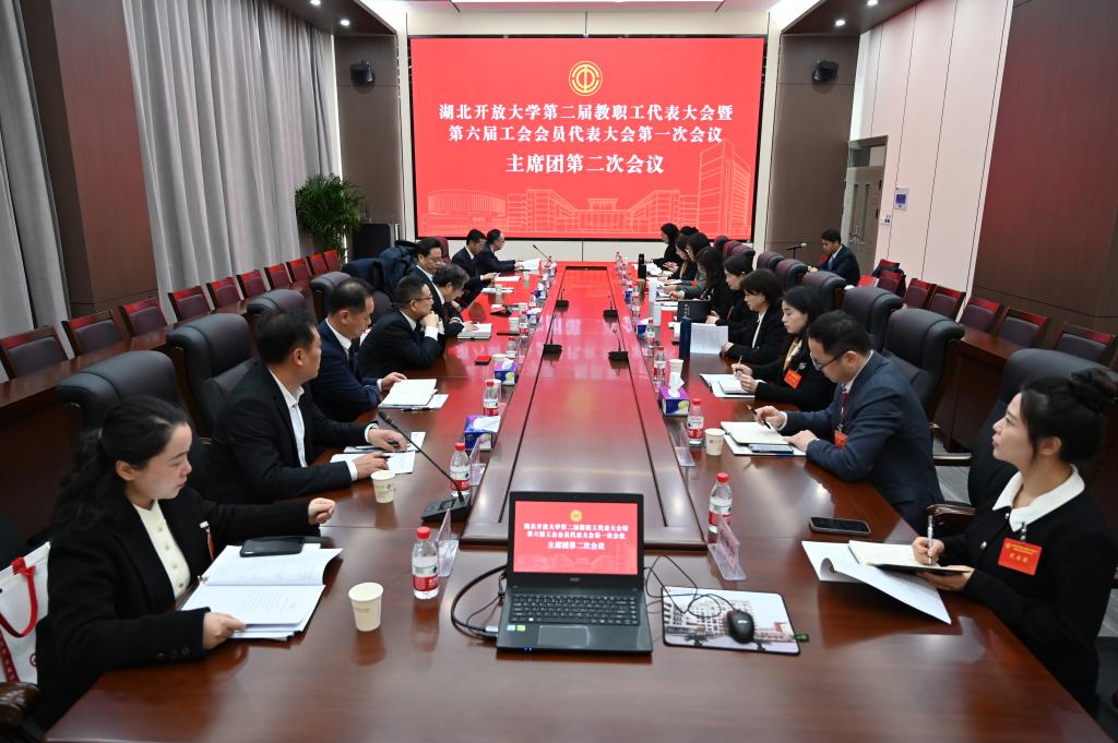 下午3点,大会进行第二次全体会议,由汤春来主持。会议表决通过大会选举办法、总监票人、监票人名单,教代会执委会暨工会委员会、工会经费审查委员会委员正式候选人名单;工会女职工委员会、教代会专门委员会委员名单、学校专业技术岗位聘期考核办法、大会决议。7个代表团团长就分组讨论情况在大会上作交流发言。各代表团普遍认为学校工作报告总结全面、数据客观真实、成绩催人奋进、工作部署思路清晰,对学校过去一年所做工作和取得的成绩给予充分肯定,同时也提出了中肯的意见和建议。