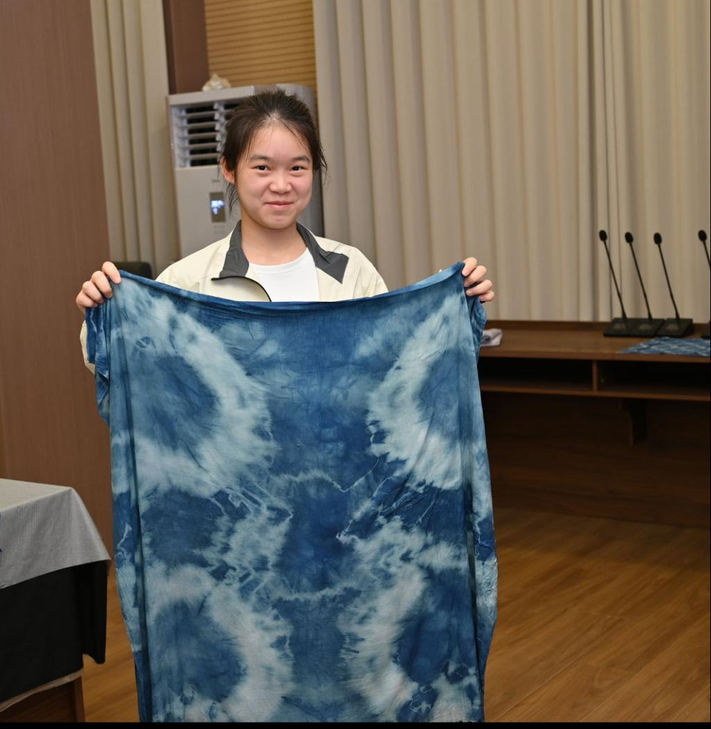 非遗植物染是云博电子体育的非遗特色课程。在欧亚梅的指导下,学生们以天然植物蓝染原料为笔,在织物上染制出绿水青山与江汉繁花。课程涵盖审美感知、艺术表现、文化理解、创意实践,从色彩哲学、纹样设计和扎染技法的艺术表现中理解荆楚文化,创作出兼具传统韵味与现代审美的作品。当香港学生林雅雯展示自己用植物蓝染丝巾时,传统工艺与现代创意的碰撞分外精彩。
