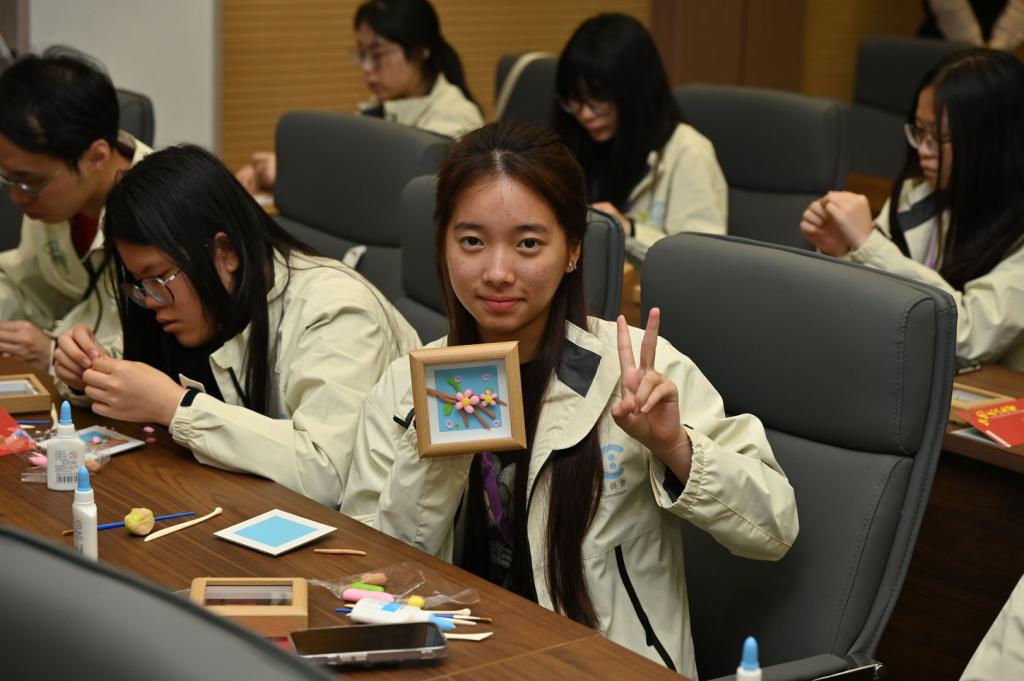 武汉面塑传承人刘洁的作品前人头攒动。这位“面人刘”不仅能用面团捏出惟妙惟肖的凤凰、编钟,更将武汉热干面、黄鹤楼等城市符号融入创作。他向学员们演示如何用工具塑造梅花,讲述面团中蕴含的楚人审美密码。当香港学生尝试制作梅花面塑时,刘洁逐一指导并提出针对性的意见,最终同学们制作出生动形象的梅花作品。