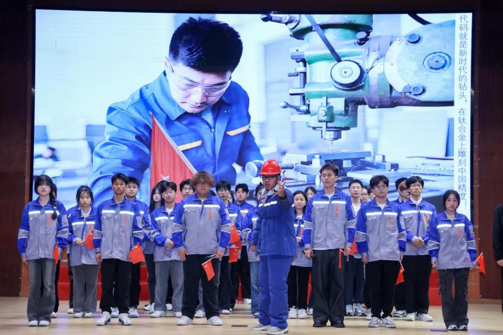 机电工程学院节目《铁人赞歌》以石油工人王进喜的奋斗史为脉络,通过机械装置、工业舞蹈等多元形式,致敬工匠精神。