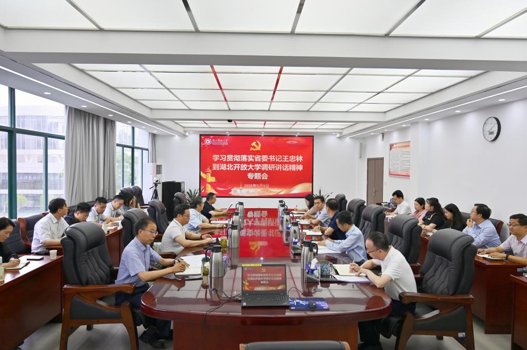 本网讯(通讯员 钟鹏/文 刘捷/图)5月7日上午,省委书记王忠林到湖北开放大学调研并召开专题会结束后,学校党委书记钟毓宁、校长陈志祥在鲁巷校区第一时间召集工作专班近50名同志学习传达省委书记王忠林调研讲话精神,对学习贯彻讲话精神以及观摩点建设事宜进行部署安排;5月9日上午,学校再次召开专题会,进一步学习传达省委书记王忠林到湖北开放大学调研讲话精神,研究部署学校贯彻落实举措。全体校领导出席会议,党委委员、纪委委员及相关部门负责人参加会议,会议由党委书记钟毓宁主持。