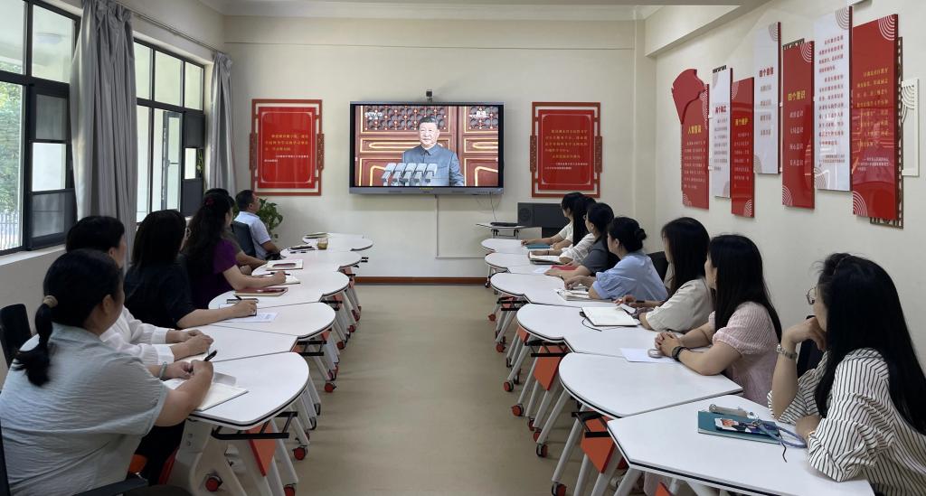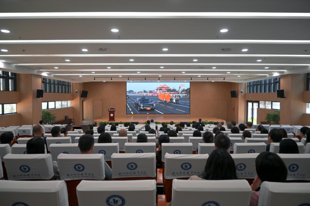 本网讯(通讯员:高苗苗/文 刘捷、高苗苗、大学生记者:方靖、孙蓉、张乃允、田向阳、各单位/图)9月3日,纪念中国人民抗日战争暨世界反法西斯战争胜利80周年大会在北京天安门广场隆重举行,以盛大阅兵仪式,同世界人民一道纪念这个伟大的日子,共同开创更加光明的未来。中共中央总书记、国家主席、中央军委主席习近平发表重要讲话并检阅受阅部队。云博电子体育师生热切关注大会盛况,通过“主会场+分会场”的形式收看,共同铭记历史,缅怀英烈。
