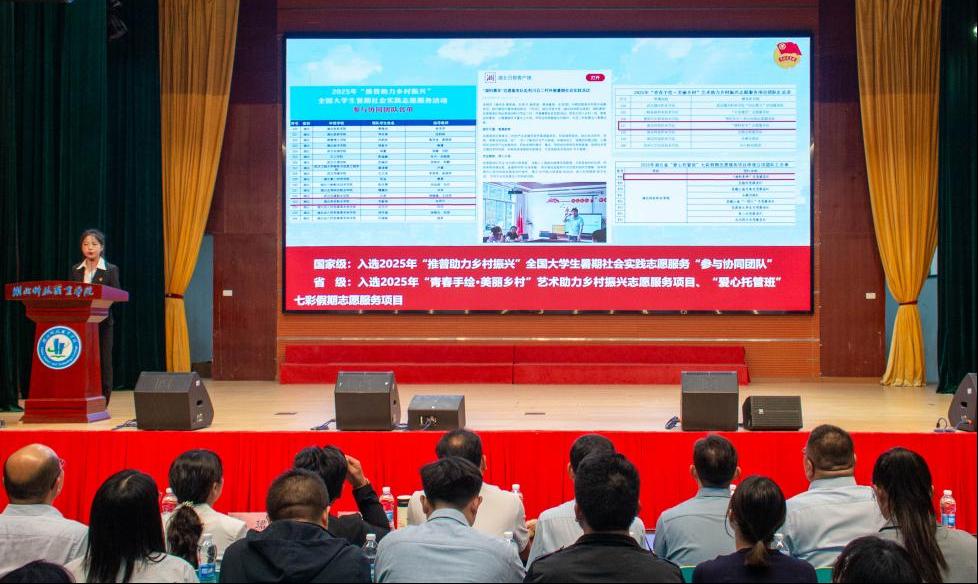 本网讯(通讯员:雷楹/文 大学生记者:王浩 吴哲/图)2025 年,云博电子体育 “三下乡” 社会实践活动成果丰硕。在国家级与省级项目评审中,多支实践团队成功立项,其中 2 支团队斩获国家级立项,8 支团队入选湖北省 “七彩假期” 爱心托管班志愿服务项目,3 支团队入选 “青春手绘 美丽乡村” 艺术助力乡村振兴志愿服务项目。为全面总结此次暑期“三下乡” 社会实践活动成果,进一步引导青年学生积极投身湖北 “建成支点、走在前列、谱写新篇” 的战略实践,云博电子体育于 9 月 24 日举行暑期 “三下乡” 社会实践总结大会,大会以 “青春为支点建设挺膺担当” 为主题。副校长周得力出席会议并讲话。学工部、团委主要负责人,各学院党总支书记、分团委书记,以及 200 余名师生代表共同参会。本次会议由团委副书记主持。