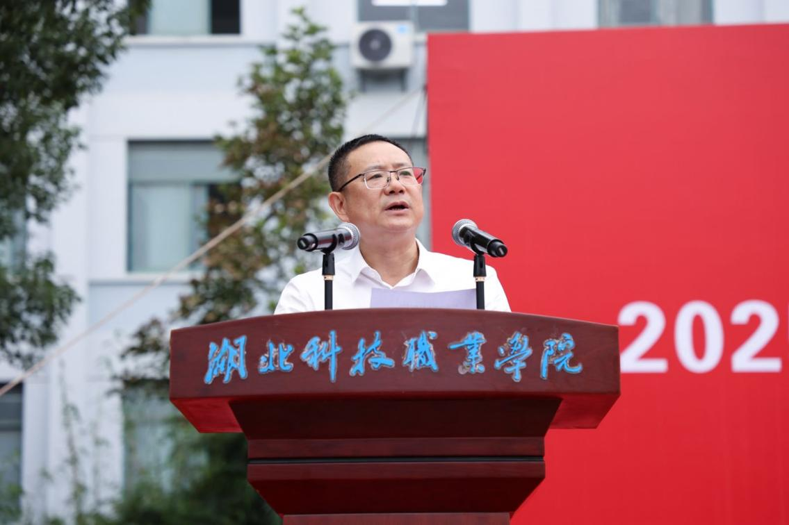 新生代表艺术创意学院2025级广告艺术设计专业柯宇麒同学发言。她感言湖科是“职业落地、梦想扎根的沃土”,并与同学们约定:以终身学习深耕专业、以主动成长突破自我、以身心健康永葆活力,用奋斗书写青春,共绘湖科新篇章!