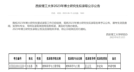 本网讯(通讯员 刘洵 文/图)“日拱一卒无有进,功不唐捐终入海”,电信工程学院2018届电子信息工程专业学生王还喜上岸西安理工大学材料科学与工程专业博士研究生,当这个好消息传来时,整个学校都为之沸腾了。“我就知道王还喜一定能实现自己的理想。”王还喜同学的入党介绍人郭兵老师激动万分。从2015年到2023年,王还喜历经八年不懈努力,一路奋斗通过专升本、硕士研究生、博士研究生三大考试,他即将开始博士深造之路。