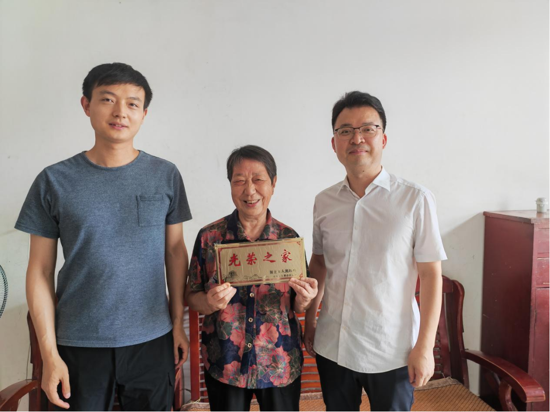 在黄陂张煜东家,学工部、武装部部长廖志红和张煜东的父母聊起了参军入伍的各项政策,传达了国家和学校最新的征兵优待条件,代表学校向参军入伍家庭送上诚挚的慰问。