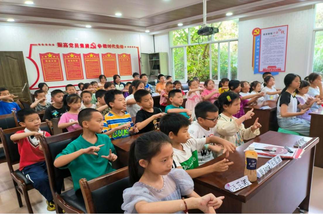 “音为有爱,舞出精彩”课堂。为培养农村儿童的艺术素养,丰富孩子们的暑期生活,志愿团队精心准备了“音为有爱,舞出精彩”主题活动,志愿者老师一声:“我们的课程开始啰。”孩子们立刻端坐,跟随老师的节奏唱起歌曲《一起向未来》。舞蹈课上,选取简单易学的《New boy》青春手势舞,大家从僵硬到灵活,从同边到协调,从不熟练到顺畅,孩子们通过自己的努力一步步蜕变,舞出了青春的活力,呈现出美丽乡间一道靓丽的风景。志愿者们纷纷表示:这群孩子们太聪明了,一教就会,看到他们整首歌唱下来,整支舞跳下来,幸福的笑容绽放在他们脸上,深深地感动蕴藏在我们心中。