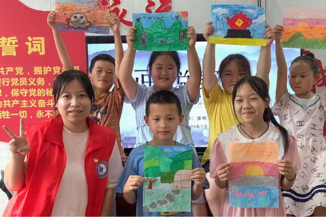 “乡村振兴正当时,我为家乡做代言”课堂。志愿者带领乡村儿童在实践中感知艺术之美,体悟乡村变化。课堂内容覆盖创意美术、涂鸦等,充分将乡村发展融入课堂教学,让孩子们通过绘画画出他们眼中的家乡是什么样子的。孩子们有的画青山绿水、有的画恩施利川红、有的画千亩茶田、也有的画晨间日出和晚间游船,一幅幅作品呈现在眼前,让我们看到了五二村的孩子们对多彩家乡文化的自豪感和认同感。