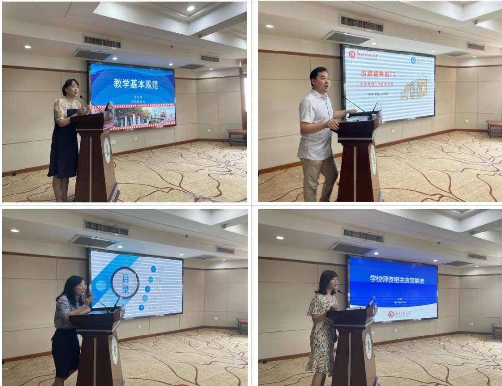 职院教务处、人事处等职能部门就教学基本规范、人事师资管理相关制度作详细介绍,电信工程学院优秀青年教师代表李渊从教学经历、科研经历、学生工作、实践工作等四个方面做了分享与交流。