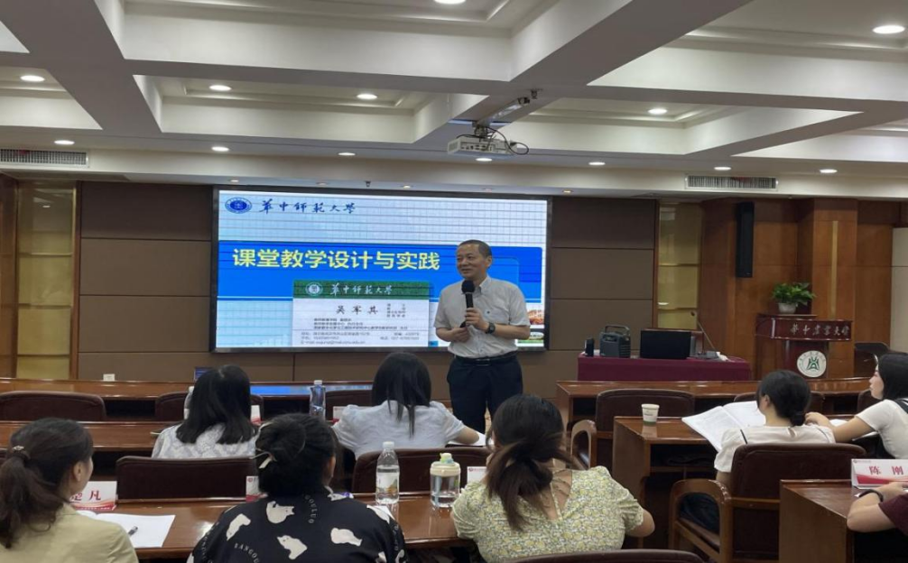 华中师范大学教师教育学院副院长、国家教师教学发展示范中心执行主任、博士研究生导师吴军其教授以“课堂教学设计与实践”为题为新进教职工作专题报告。他围绕如何上好一节课,从教学设计、课堂导入、呈现方式、活动组织、学习评价、课堂小结等六个维度,运用丰富的案例生动展示了如何在实际教学中灵活运用各种方法与手段,提升课堂教学质量,鼓励教师们灵活运用相应的方式方法进行课堂教学设计和实践。