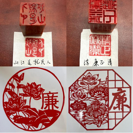 将清廉文化与艺术专业课程融合育人,学生“非遗篆刻+廉洁”“非遗剪纸+廉洁”作品