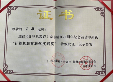 近年来,王敏以就业为导向在教学资源建设、教育教学方法改革方面方面做了大量教学实践,主持完成了省级教研课题4项,主持省级重点教研课题1项,在《计算机教育》杂志发表相关论文4篇,累计发表相关论文8篇。通过论坛组委会组织评审,最终获评“计算机教育教学实践奖”。