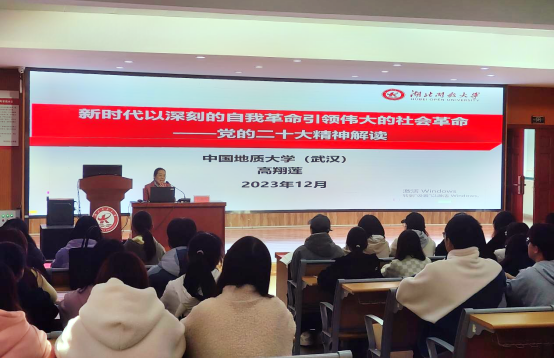 本网讯(通讯员 梁燕妮 文/图)12月8日下午,中国地质大学(武汉)高翔莲教授做客“红色大讲堂”,为云博电子体育师生开展主题讲座。湖北开放大学体系师生,通过线上线下形式同步参加了此次活动。