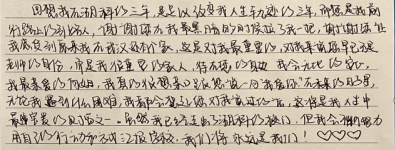 毕业后,她成功考上了理想的学校,并主动为母校的学弟学妹们分享备考经验。她给我写信道:回想在湖科的三年,是足以改变人生轨迹的三年,虽然已经走出了湖科的校门,但我会不断努力,用自己的实际行动回报母校。