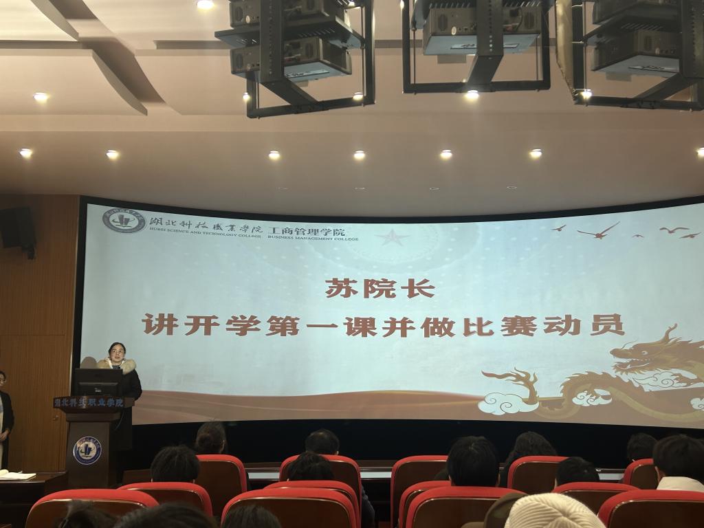 苏枫对新学期的学院工作做了方向指引,并发起了今年挑战杯比赛的总动员。她肯定学院历年竞赛所取得的成绩,并鼓励同学们抓住机会,在创新创业实践的大舞台上争做先锋、勇当闯将,通过技能大赛锻炼所学,通过技能展示大国工匠精神,展现工管学子的青春风采,践行“技能成才、强国有我”的誓言。
