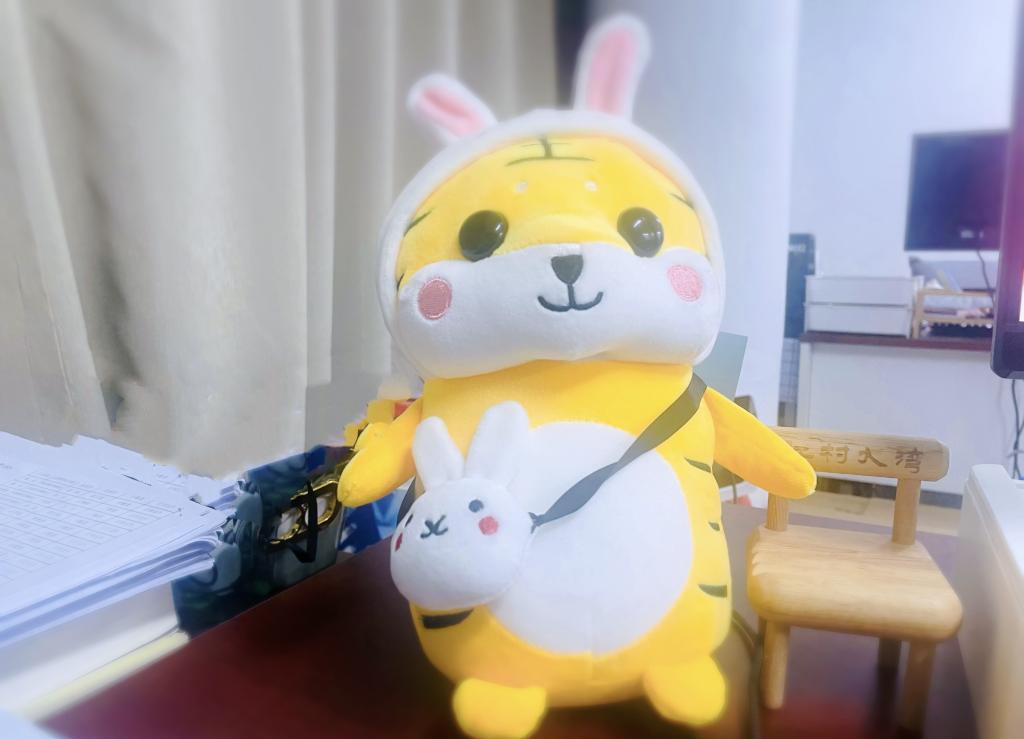 因为这只小老虎,我才知道,在开学至今短短一个月时间里,已经有学生慢慢喜欢我、认可我,这让我有勇气一次次踏进宿舍,开启社牛模式;一次次走上讲台,在上面滔滔不绝。