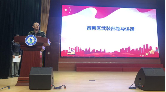 民兵学生代表段安发言,他回顾了自己八年来的军旅生涯,表示很荣幸在部队退役后还能加入学校民兵组织,继续发光发热,为学校、社会做出贡献,展现学校民兵的良好形象。
