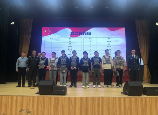 仪式现场,在民兵班班长的带领下,全体民兵进行了庄严宣誓。领导为新入队民兵发放民兵服。