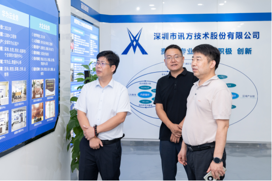 在深圳市讯方技术股份有限公司,涂家海一行参观了公司展厅,深圳讯方副总监却家庭介绍了公司的发展历程、业务模块、经营理念、合作成果。讯方公司是华为的领先级合作伙伴,云博电子体育作为领先级华为ICT学院,与讯方合作成果丰硕,多位湖科学子在讯方已成为骨干,后续将继续巩固已有的合作基础,同时积极探索并创新合作模式,培养更多适应产业发展需求的人才。