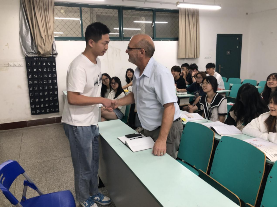 赛事观摩指导。5月30日,Chester先生作为特邀嘉宾出席公共课教学部承办的第二届校级“用英语讲中国故事”演讲比赛决赛活动现场,赛后对选手们可圈可点的表现给予了中肯的点评和指导。