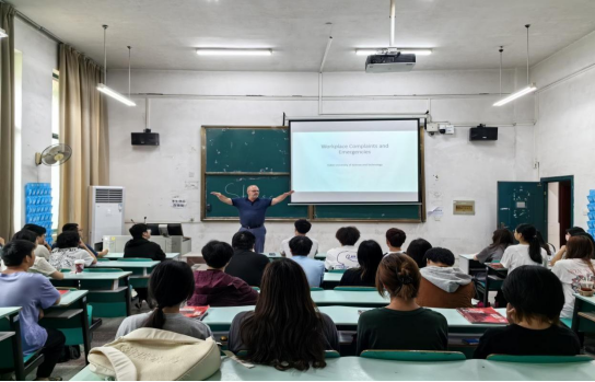 教师联合授课。6月初至中旬,公共英语教研室邀请Chester先生走进《职场通用英语》课堂与英语教师共同授课。作为职场商务沟通领域的资深专家,Chester先生为学生普及了面试技巧、西餐礼仪、危机应对、投诉处理、汇报演示等职场必备的应对策略和沟通技能。课中,学生踊跃参与各种职场情境模拟活动,与外教进行积极的双向互动,风趣幽默、别开生面的沉浸式课堂让学生体验深刻,收获满满。