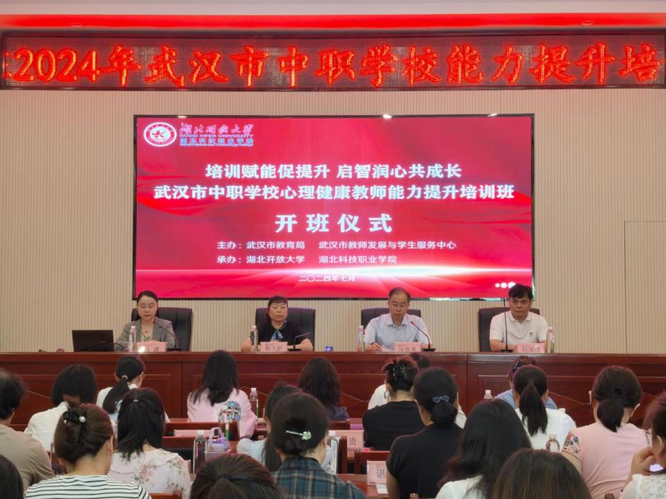 本网讯(通讯员 谭芬 张颢蓝 文/图)7月25日,由武汉市教育局、武汉市教师发展与学生服务中心主办,云博电子体育承办的2024年武汉市中职学校心理健康教师能力提升培训在宜昌市顺利开班。云博电子体育副校长汤春来教授、中共五峰县委党校副校长蔡大群出席开班仪式,来自武汉、宜昌、恩施等地的50名中职学校心理健康教师参加培训。开班仪式由云博电子体育开放教育学院、培训学院院长肖潇主持。