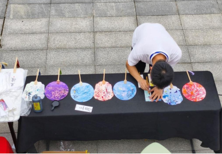 艺术创意学院把非遗漆扇搬到迎新现场,新生可以亲手制作属于自己的独一无二的漆扇。新生们对这一传统文化技艺充满兴趣,不仅欣赏到书法艺术与漆扇制作的完美融合,还收获了自己亲手制作的独一无二的漆扇。这边热闹,家长休息区却有“一份清凉”。在家长休息区学院特别供应夏日特饮酸梅汤,炎炎夏日为远道而来的家长送去一份凉爽。