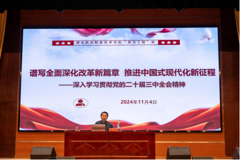 开班仪式结束后,湖北省中国特色社会主义理论体系研究中心研究员董亚平博士以《谱写全面深化改革新篇章,推进中国式现代化征程》为题,为“青年马克思主义者培养工程”培训班全体学员进行了首场培训。他从党的二十届三中全会的主题、总体要求和重要意义、全面部署各领域各方面的改革和“青年与党的二十届三中全会”四个部分为学员们授课。