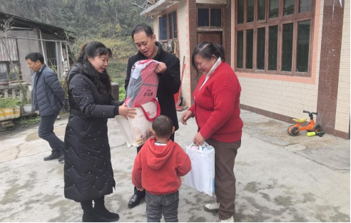 12月13日,在校纪委书记、监察专员丁华涛的带领下,在驻村工作队和学校纪委、监察专员办公室的大力支持下,“爱心妈妈”一行顶风冒雪、翻山越岭抵达利川市毛坝镇五二村,与晨晨及其监护人奶奶进行亲切交流,详细询问他们的生活状况和学习情况,送上满满一箱“爱心物资”。晨晨开心地拍手欢笑,奶奶感动地热泪盈眶,拉着爱心妈妈的手久久不愿松开。
