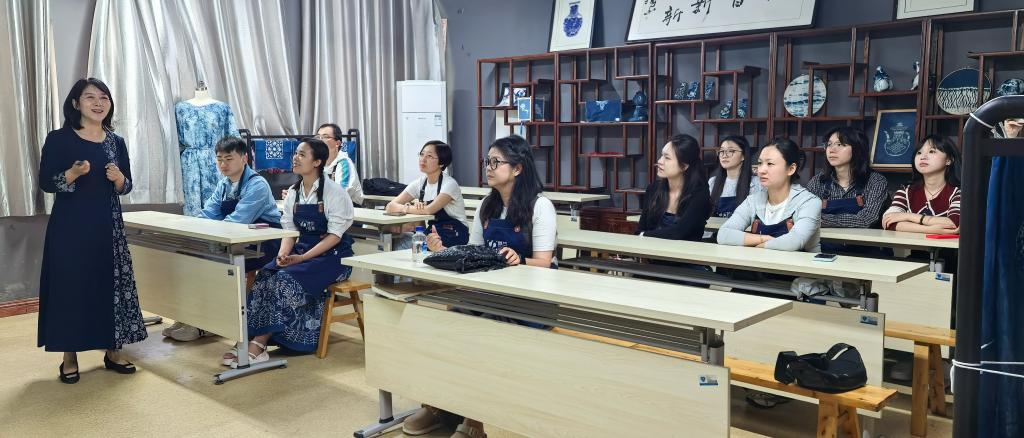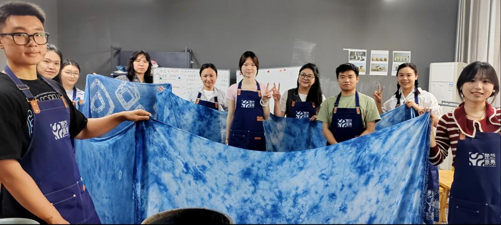 学术殿堂里的非遗之光。4月23日,当中南民族大学文学院副院长陈俊峻教授带领的博士团队步入正在建设的非遗展厅时,一场关于文化基因解码的对话就此展开。从武汉剪纸的纹样流变到植物染料的科学萃取,博士生与云博电子体育研究团队围绕“非遗活态传承的当代路径”展开深度研讨。在非遗蓝染工坊,云博电子体育欧亚梅老师的专题教学课将学术思辨引向实践场域。博士生们褪去学术长袍,执起染缸中的布匹,通过浸染、氧化、固色等工序,让古籍中的文字记载转化为具象的靛蓝纹样。这种“学术+技艺”的跨界体验,为双方后续联合申报的荆楚非遗口述史研究项目注入鲜活注脚。“非遗传承既要守得住老手艺,更要讲得出新故事。”云博电子体育发展规划处负责人表示,该场活动从实践创新与学术研究维度,印证了职业院校与本科高校协同育人的可能性。